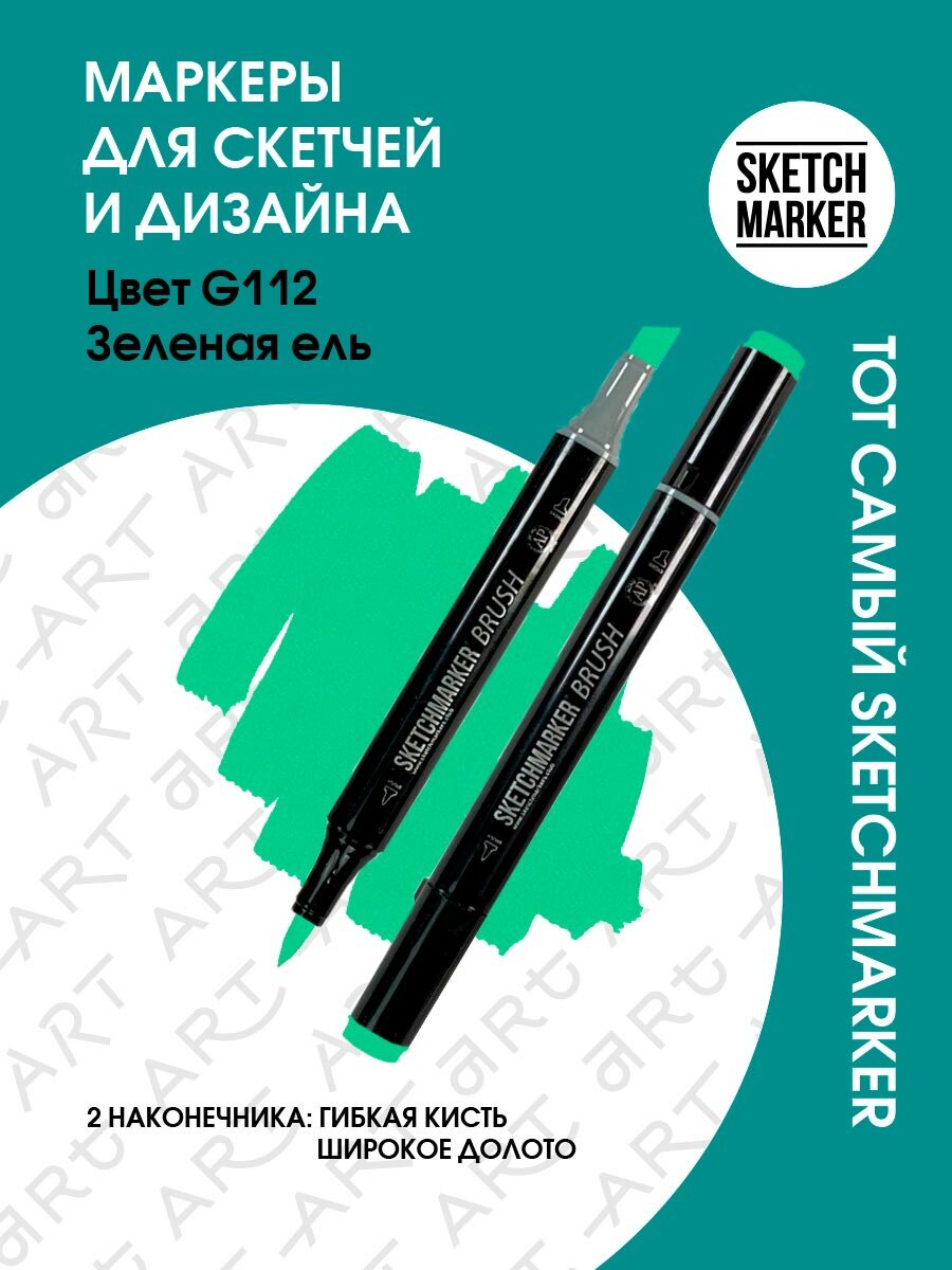 СохранитьДвусторонний заправляемый маркер SKETCHMARKER Brush Pro на спиртовой основе для скетчинга, цвет: G112 Зеленая ель интересное: