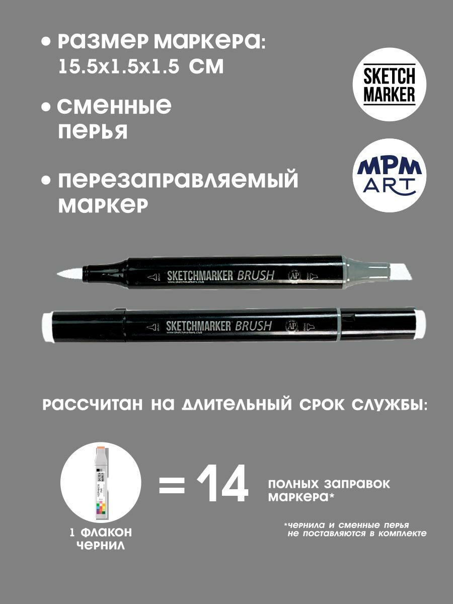 СохранитьДвусторонний заправляемый маркер SKETCHMARKER Brush Pro на спиртовой основе для скетчинга, цвет: SG9 Простой серый 9 интересное: