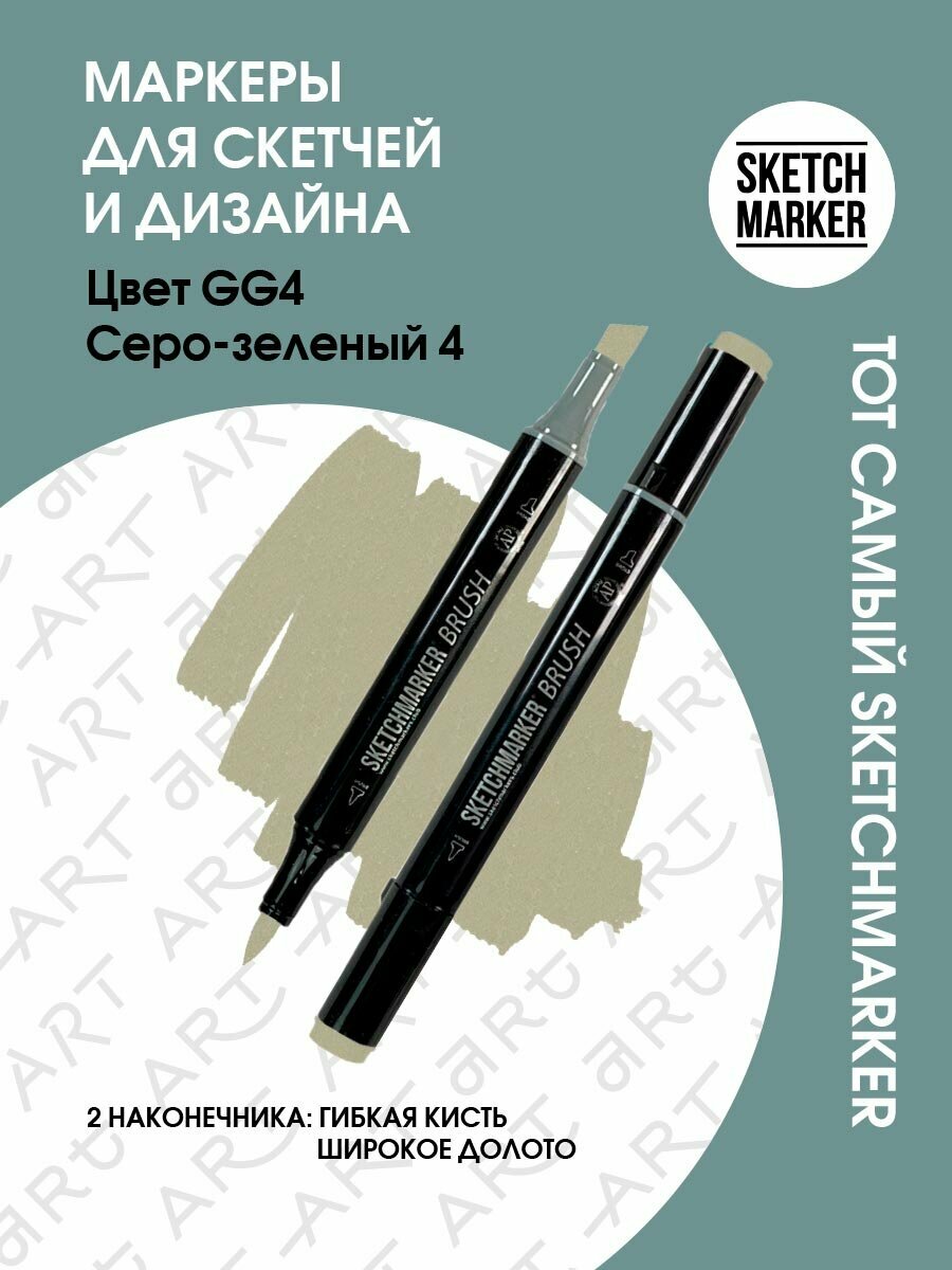 СохранитьДвусторонний заправляемый маркер SKETCHMARKER Brush Pro на спиртовой основе для скетчинга, цвет: GG4 Серо зеленый 4 интересное: