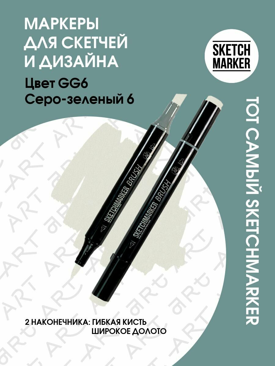Купить Двусторонний заправляемый маркер SKETCHMARKER Brush Pro на спиртовой основе для скетчинга, цвет: GG6 Серо зеленый 6
