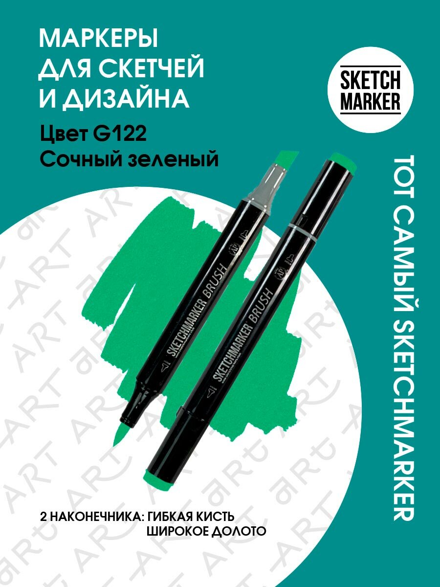 СохранитьДвусторонний заправляемый маркер SKETCHMARKER Brush Pro на спиртовой основе для скетчинга, цвет: G122 Сочный зеленый интересное: