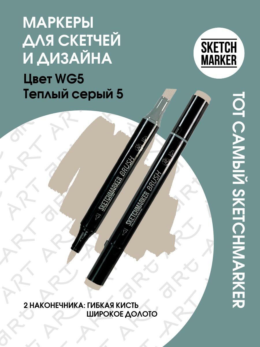 Купить Двусторонний заправляемый маркер SKETCHMARKER Brush Pro на спиртовой основе для скетчинга, цвет: WG5 Теплый серый 5