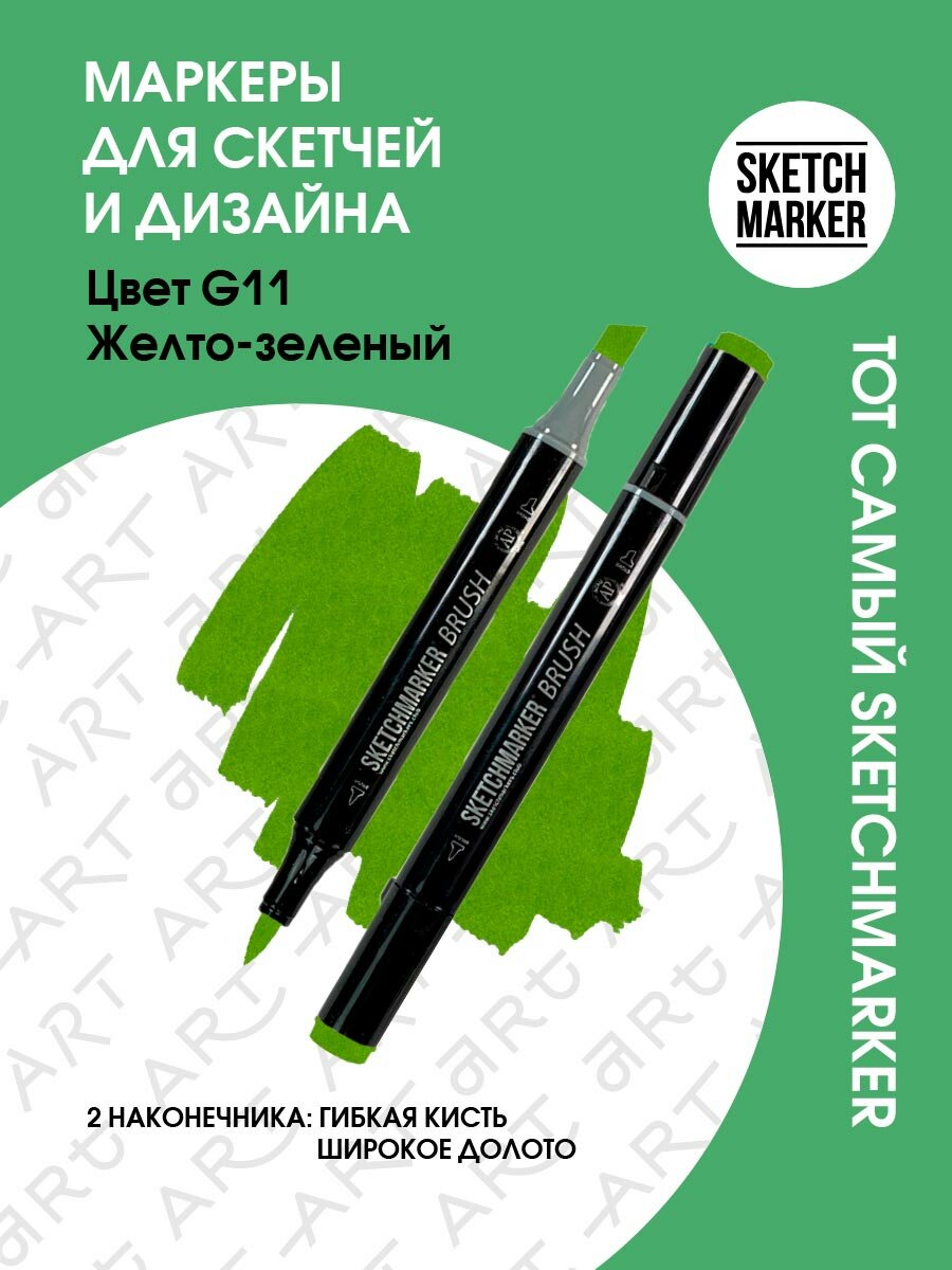 СохранитьДвусторонний заправляемый маркер SKETCHMARKER Brush Pro на спиртовой основе для скетчинга, цвет: G11 Желто зеленый интересное: