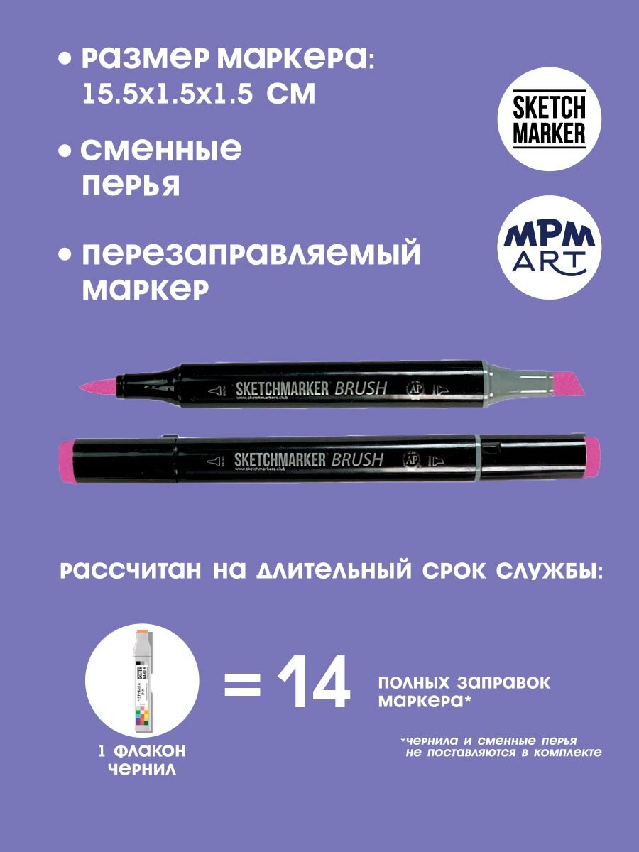 СохранитьДвусторонний заправляемый маркер SKETCHMARKER Brush Pro на спиртовой основе для скетчинга, цвет: V101 Фиолетовый ирис интересное: