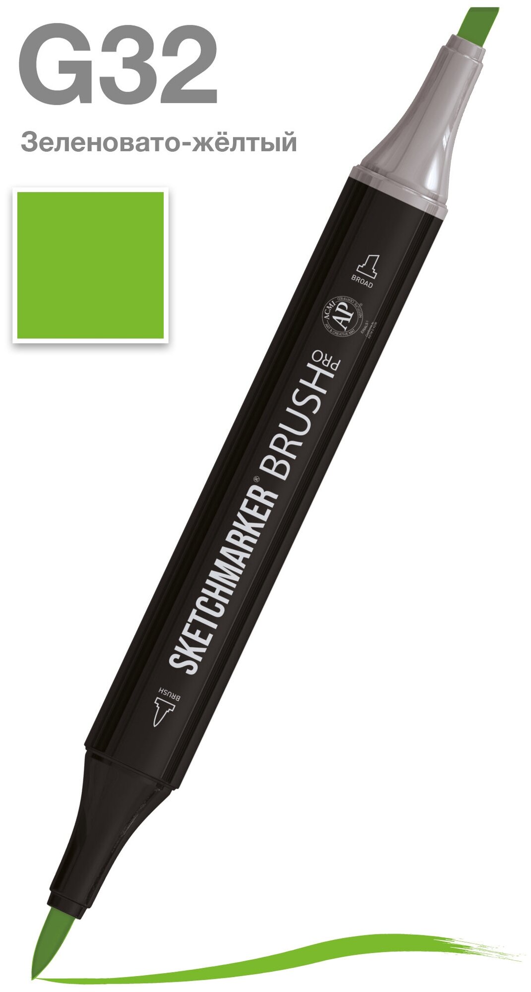 Купить Двусторонний заправляемый маркер SKETCHMARKER Brush Pro на спиртовой основе для скетчинга, цвет: G32 Зеленовато-желтый
