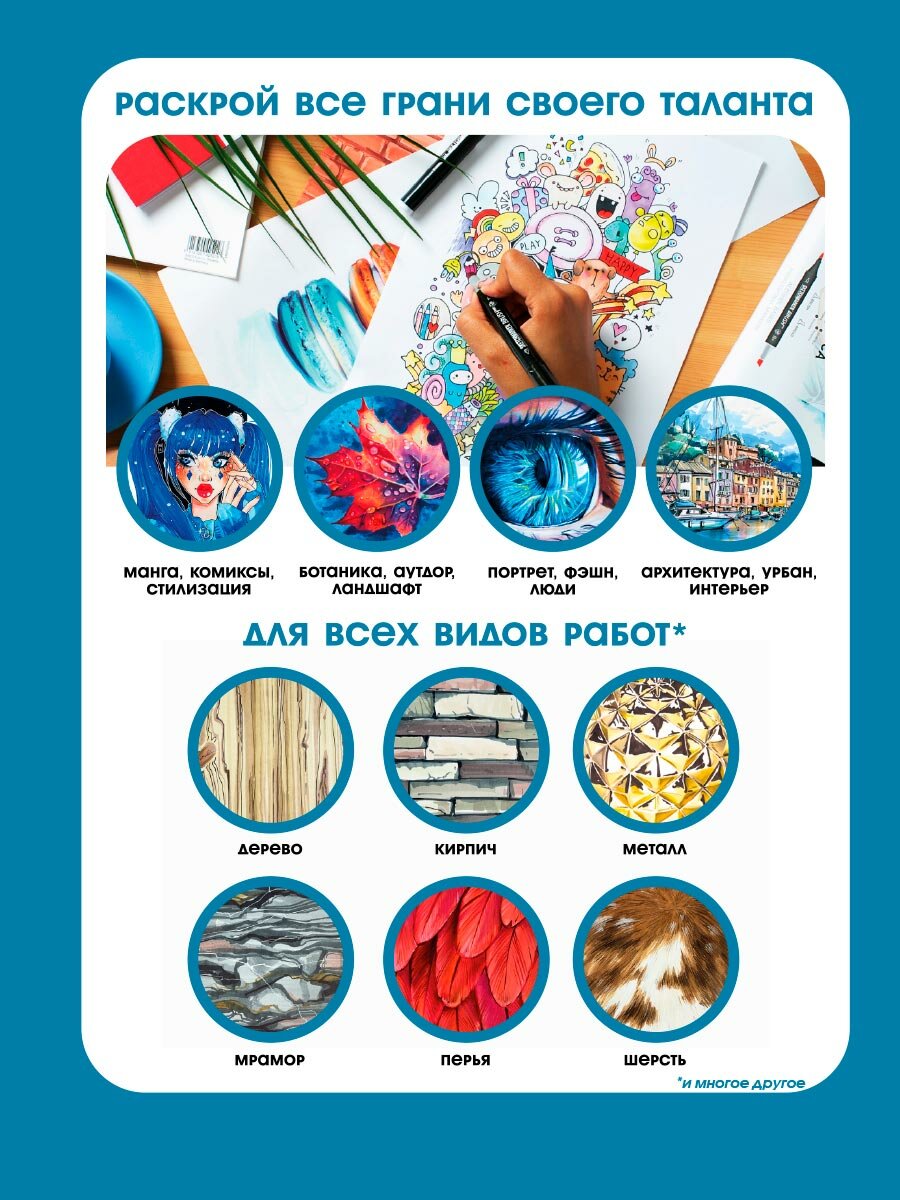 | Плюсы: | По качеству не уступают copic и touch, а цена ниже. Очень большая палитра оттенков |