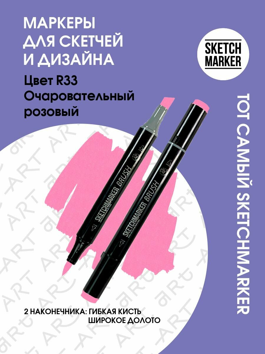 СохранитьДвусторонний заправляемый маркер SKETCHMARKER Brush Pro на спиртовой основе для скетчинга, цвет: R33 Очаровательный розовый интересное:
