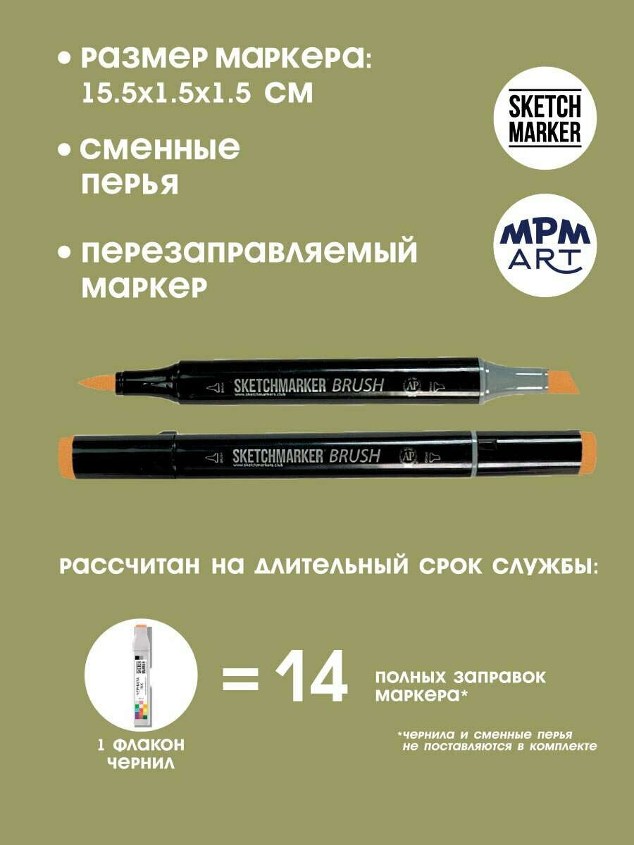СохранитьДвусторонний заправляемый маркер SKETCHMARKER Brush Pro на спиртовой основе для скетчинга, цвет: BR72 Бежевый интересное: