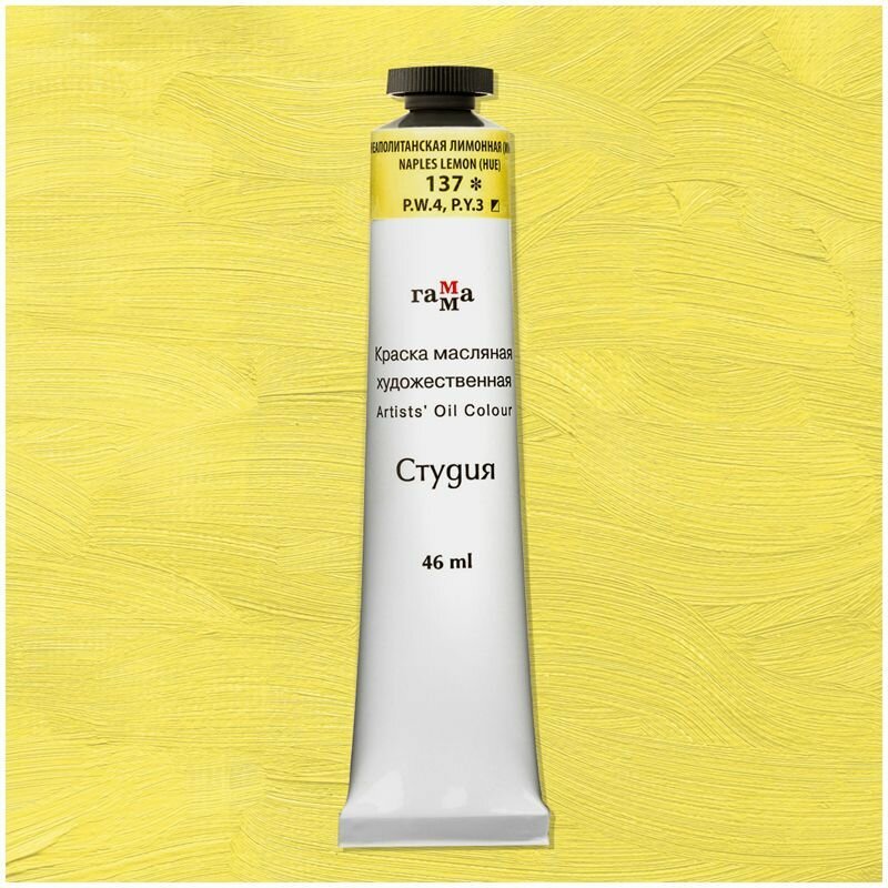 Купить Краска масляная художественная Гамма "Студия", 46мл, туба, неаполитанская лимонная (имит.)
