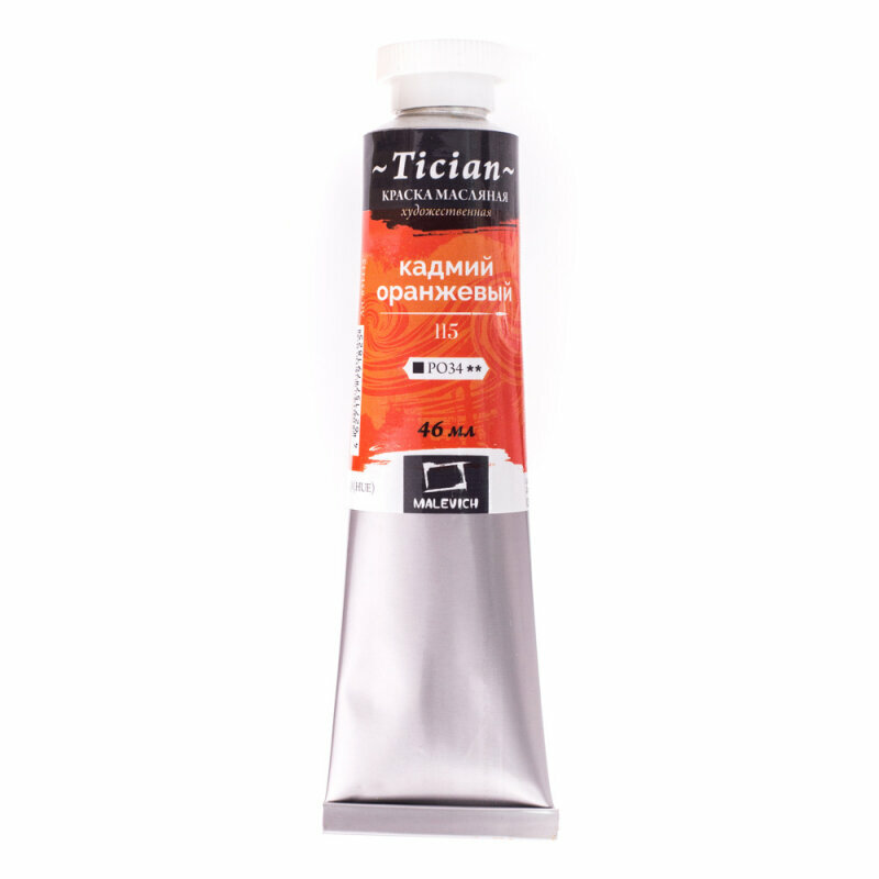 Масляные Малевичъ Масляная краска Tician малевичъ, туба 46мл, 115 Кадмий оранжевый