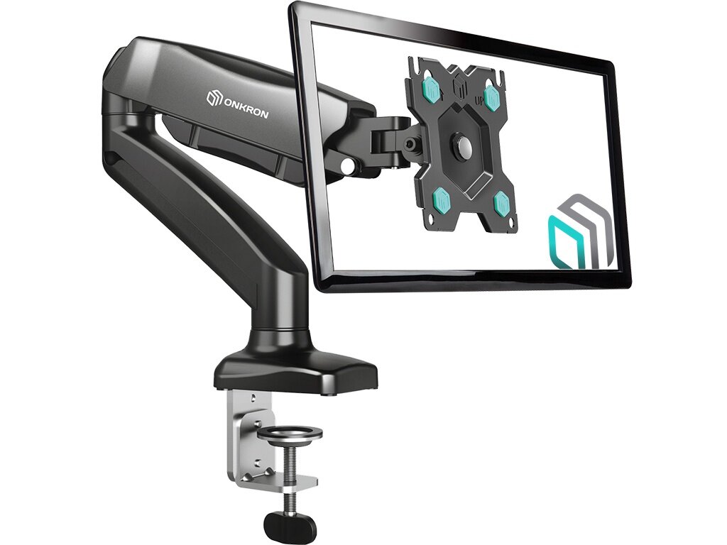 Кронштейн для мониторов ONKRON/ 13-32 газлифт макс 100*100 наклон -45?/+90?, поворот +-90°, 2 колена, от стены: до 450мм, крепление к столу 10-85мм, в