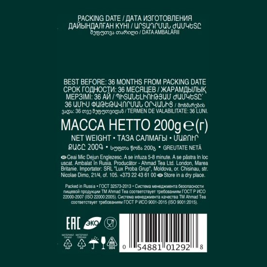 Чай AHMAD (Ахмад) "English Breakfast", черный листовой, картонная коробка, 200 г, 1292-012