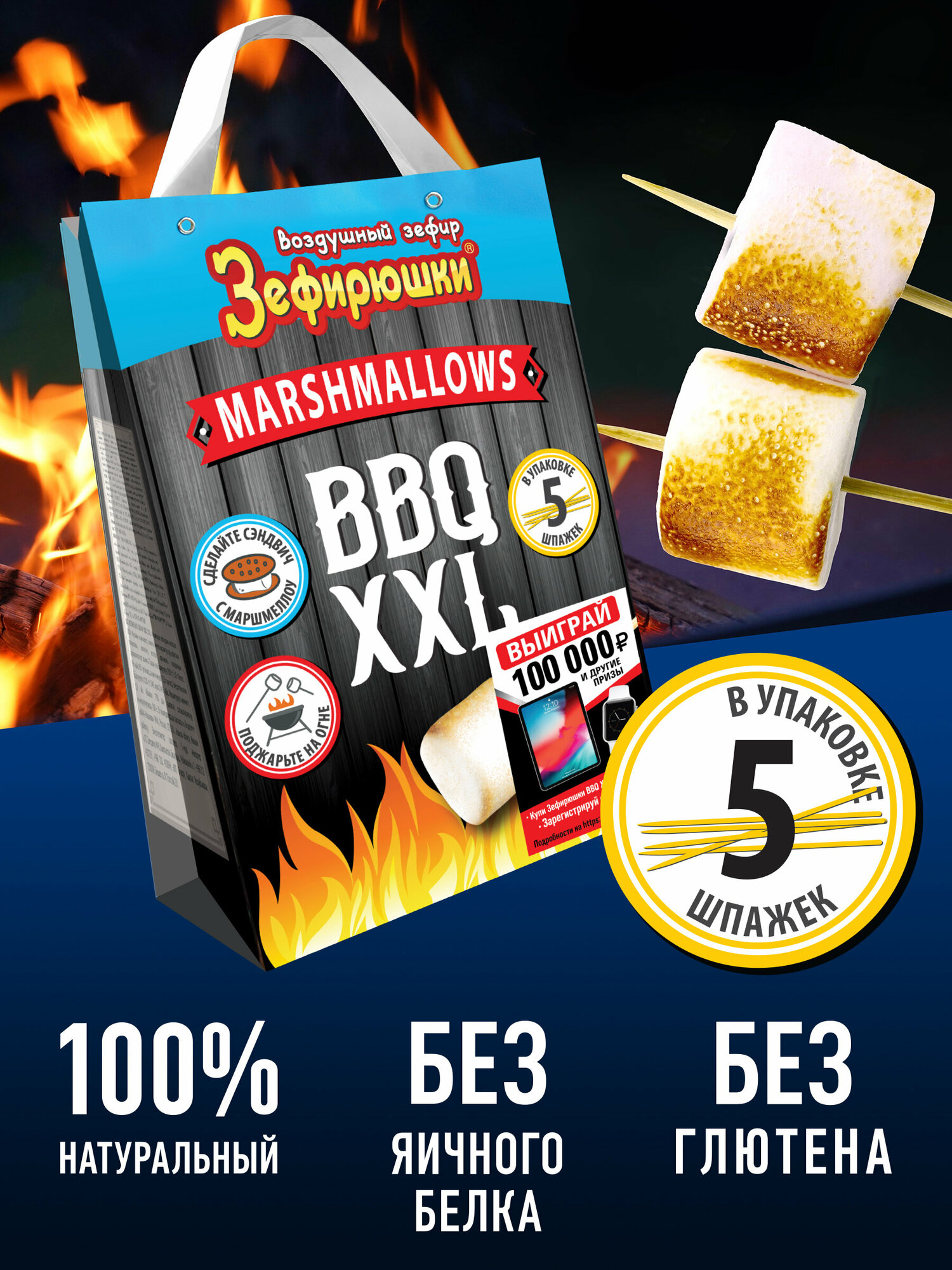 Воздушный зефир для костра маршмеллоу Зефирюшки для барбекю Россия, 200 г интересное: