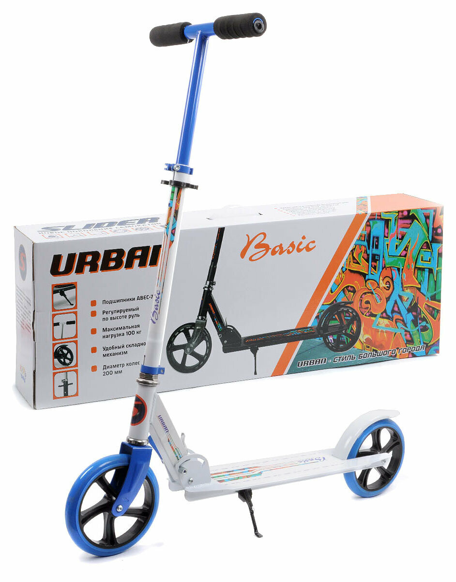 Городской самокат Slider URBAN BASIC, белый/голубой