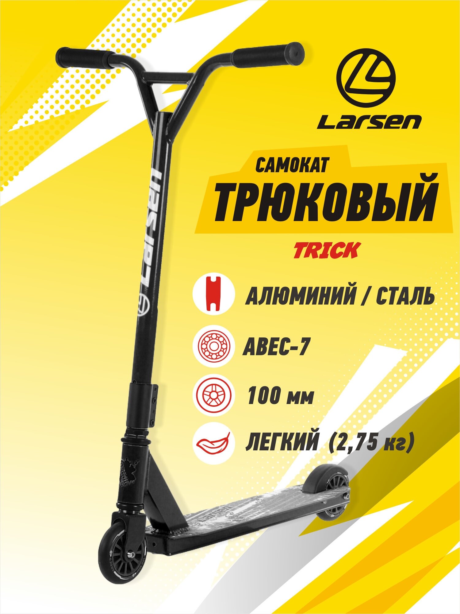 Самокат трюковый Larsen Trick Black интересное: