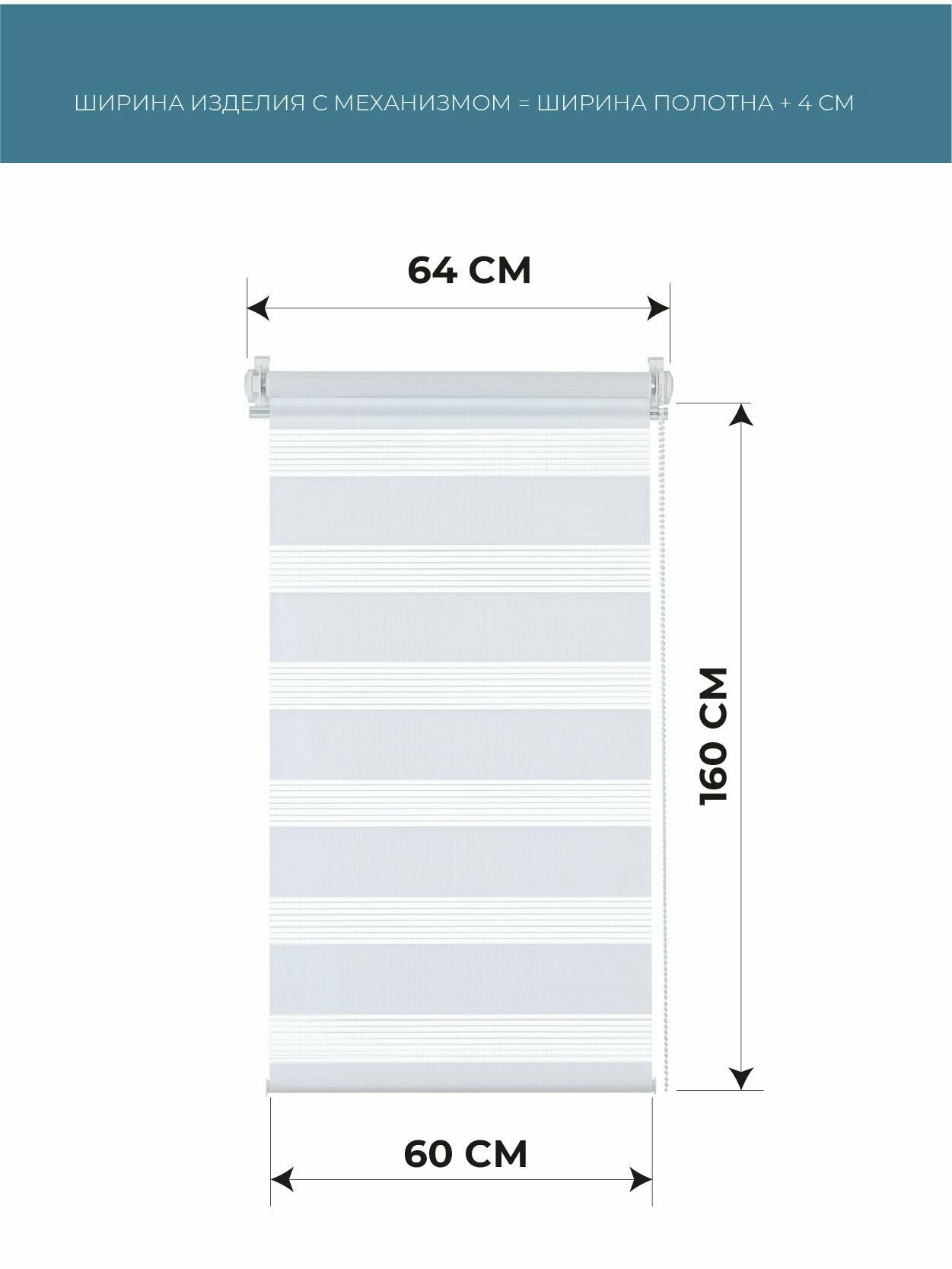 Рулонные шторы день ночь Бейс Белый DECOFEST 60 см х 160 см, жалюзи на окно