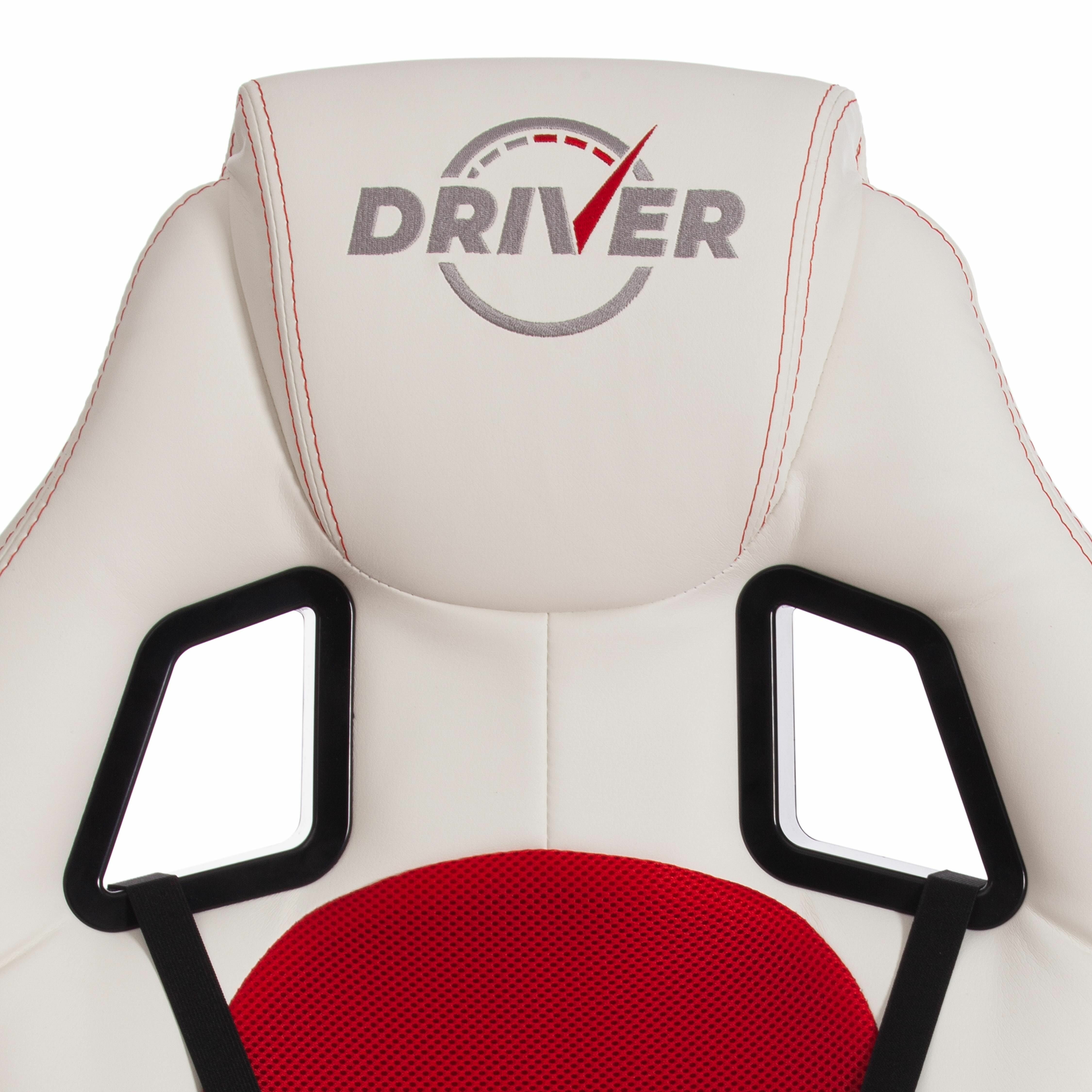 Кресло DRIVER (22) кож/зам/ткань, белый/красный, 36-01/TW-08
