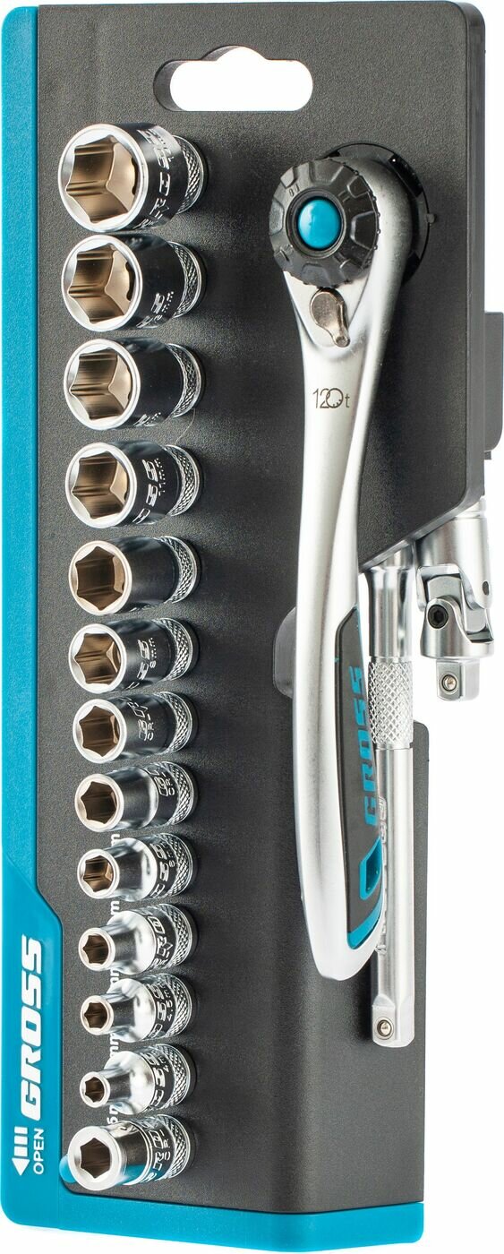 Купить Набор торцевых головок, трещотка 120 зубьев, 36 предметов, 1/4", CrV Gross