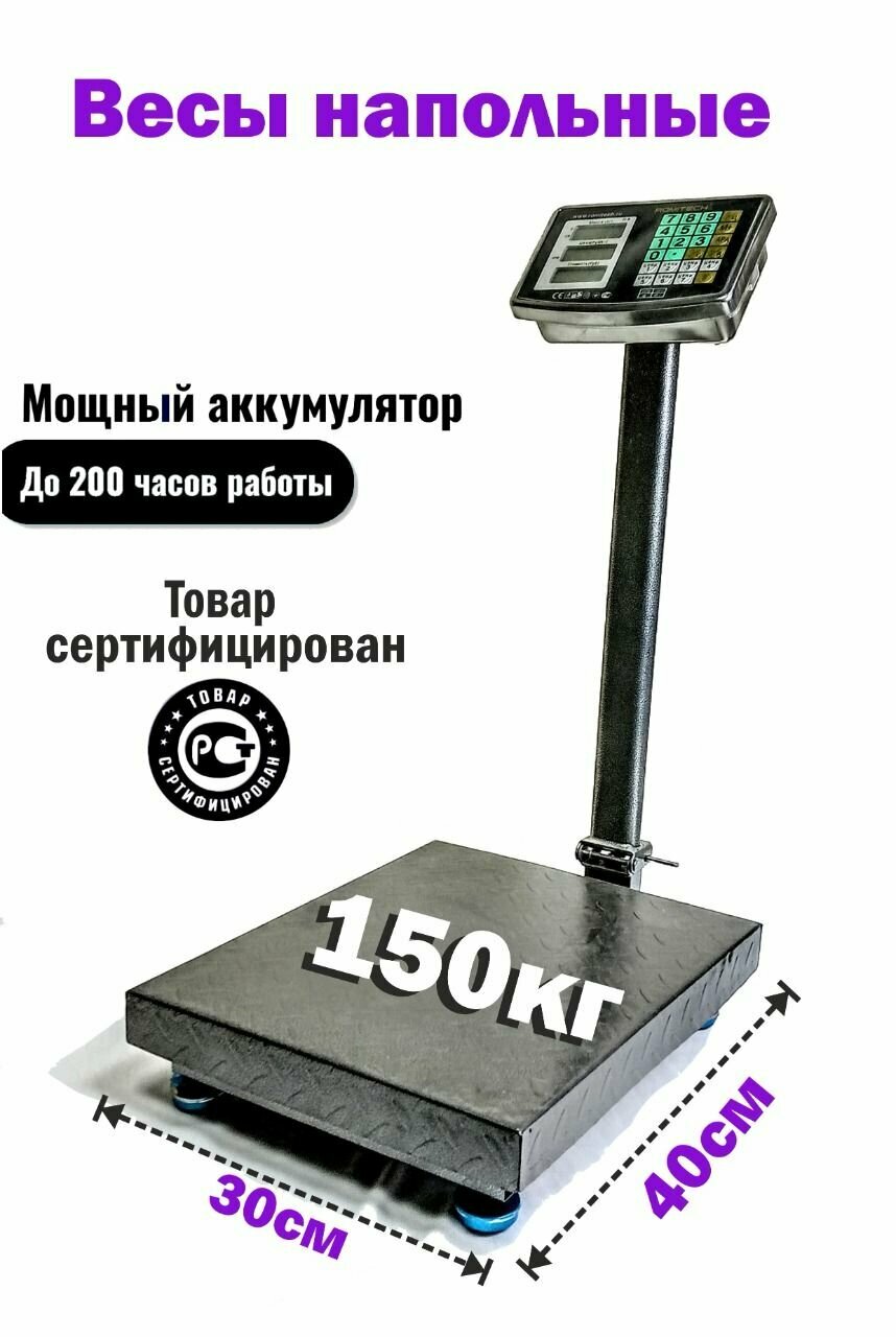 Весы напольные торговые электронные до 150 кг ВТH 150 с точностью 50г 30 на 40см площадка интересное: