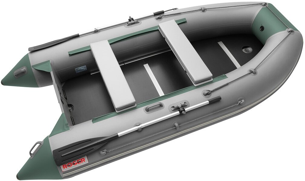 Лодка надувная ПВХ под мотор ROGER Hunter Keel 3500, лодка роджер с жестким дном (зеленый-серый комбинированный)