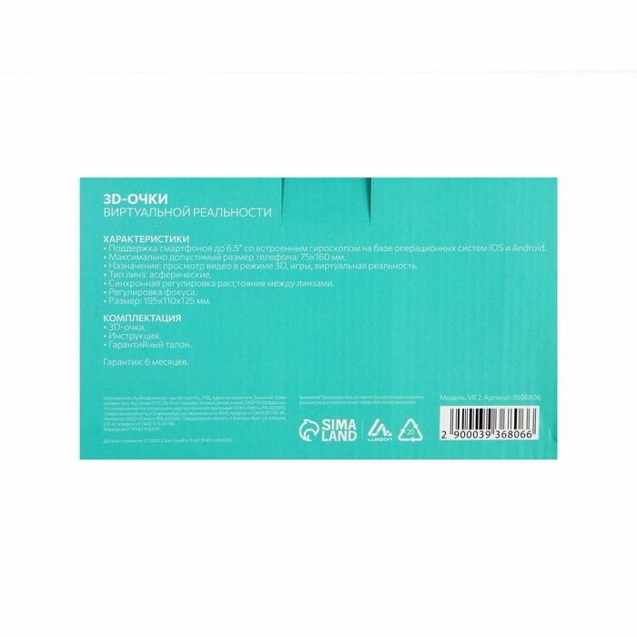 Очки виртуальной реальности Luazon Home 3D VR 2, смартфоны до 6,5", 75х160 мм, черно-белые интересное: