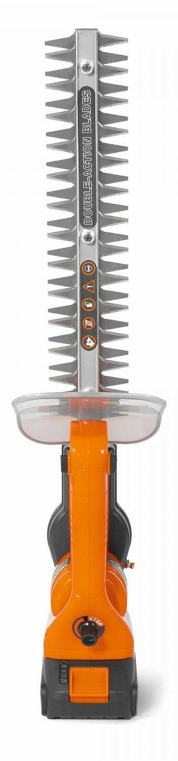 | Отзыв: | Прикольная вещь для сада, если нужно постричь кусты самое то, и по времени выходит экономичнее, чем секатором. Нож двухсторонний, поэтому с работой справляется отлично. Есть предохранитель от случайного включения, не мало важный фактор для защиты от детей. |