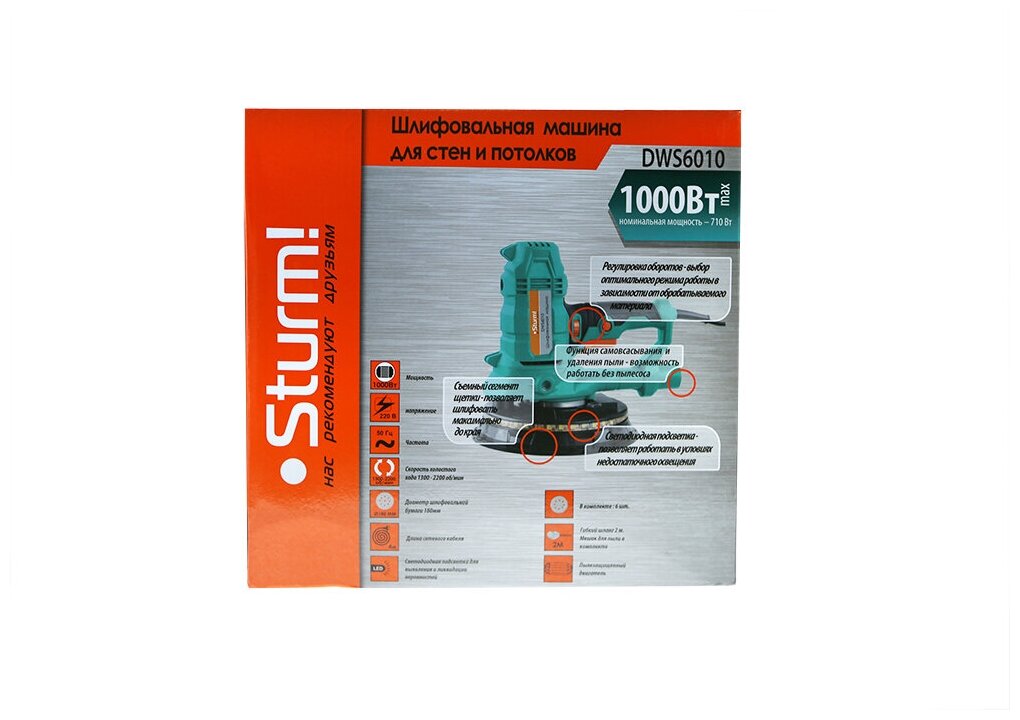 Машина для шлифовки стен Sturm! Dws6010, подсветка .