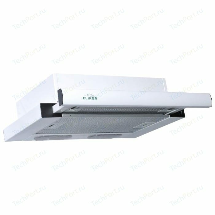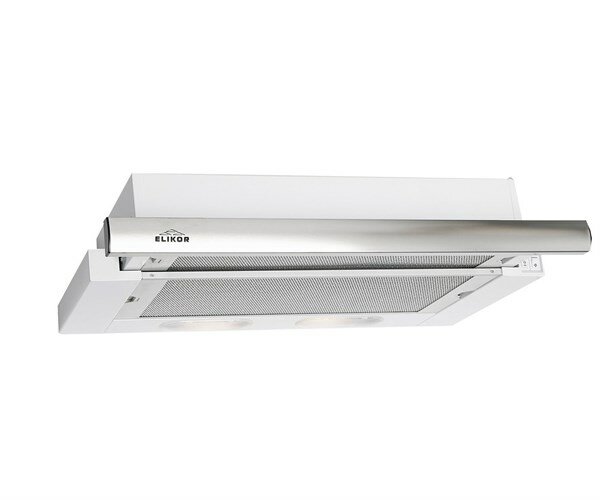 Вытяжка кухонная 45 см ELIKOR Интегра, встраиваемая, телескопическая, производительность - 400 м3/ч, управление клавишное, 2 скорости, лампы накаливания, белый / серебристый