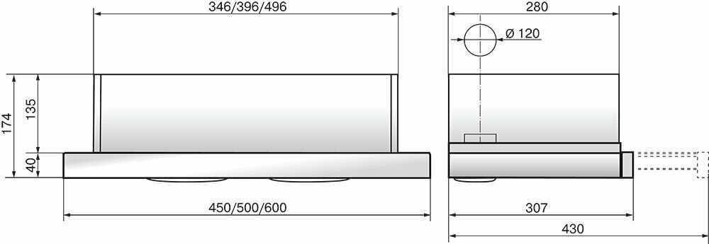 Вытяжка кухонная 50 см ELIKOR Интегра, встраиваемая, телескопическая, производительность - 400 м3/ч, управление клавишное, 2 скорости, лампы накаливания, черный