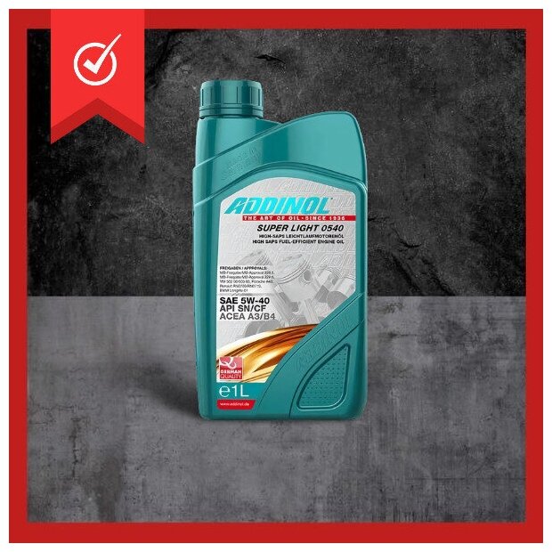 Ниже Вы можете прочитать отзывы на Addinol Super Light 0540 SAE 5W-40 1 л., ознакомится с подробными характеристиками, посмотреть интересные обзоры и фотографии на Addinol Super Light 0540 SAE 5W-40 1 л..