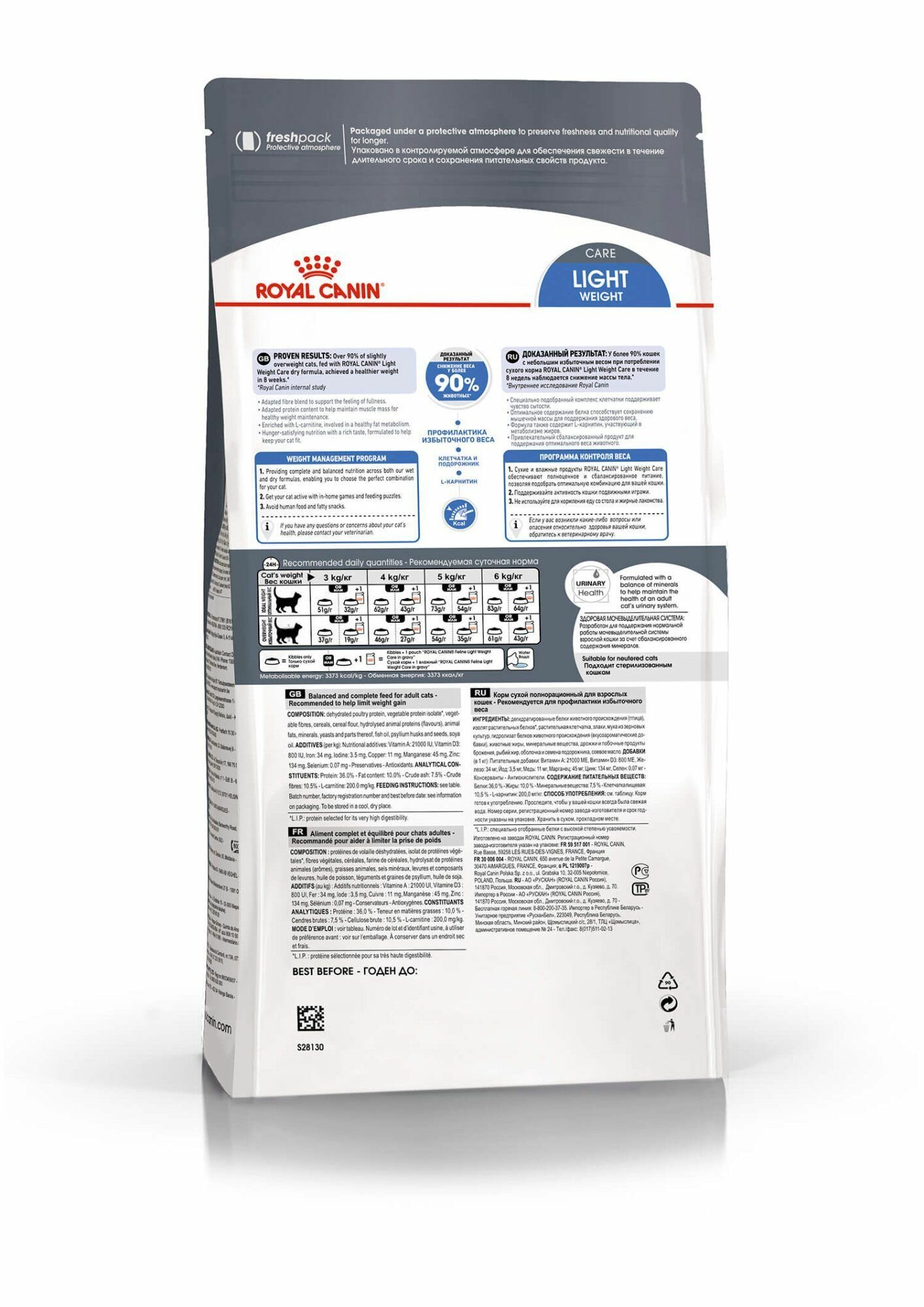 Royal Canin Light Weight Care Корм сухой для взрослых кошек для профилактики лишнего веса, 1,5 кг