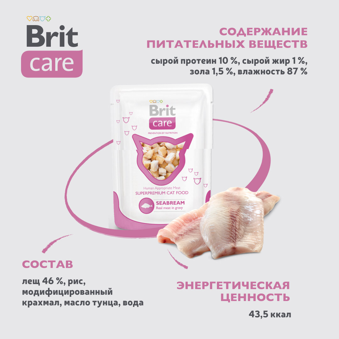 Brit Паучи для взрослых кошек Care с морским лещом (White Fish) 101020 | White Fish, 0,08 кг (10 шт)