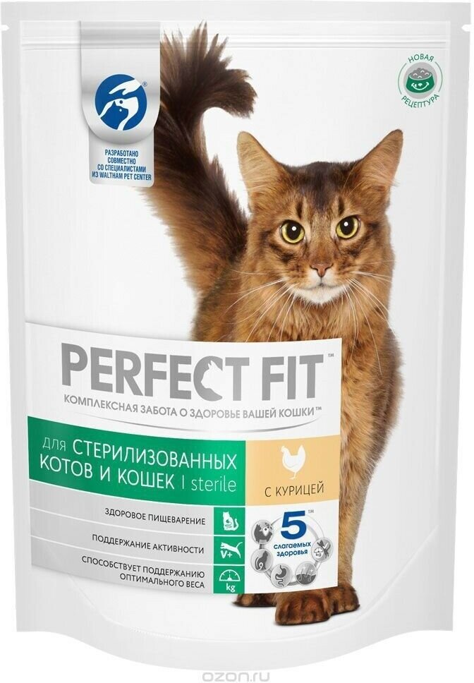Сухой корм Perfect Fit для кастрированных котов и стерилизованных кошек курица sterile 650г