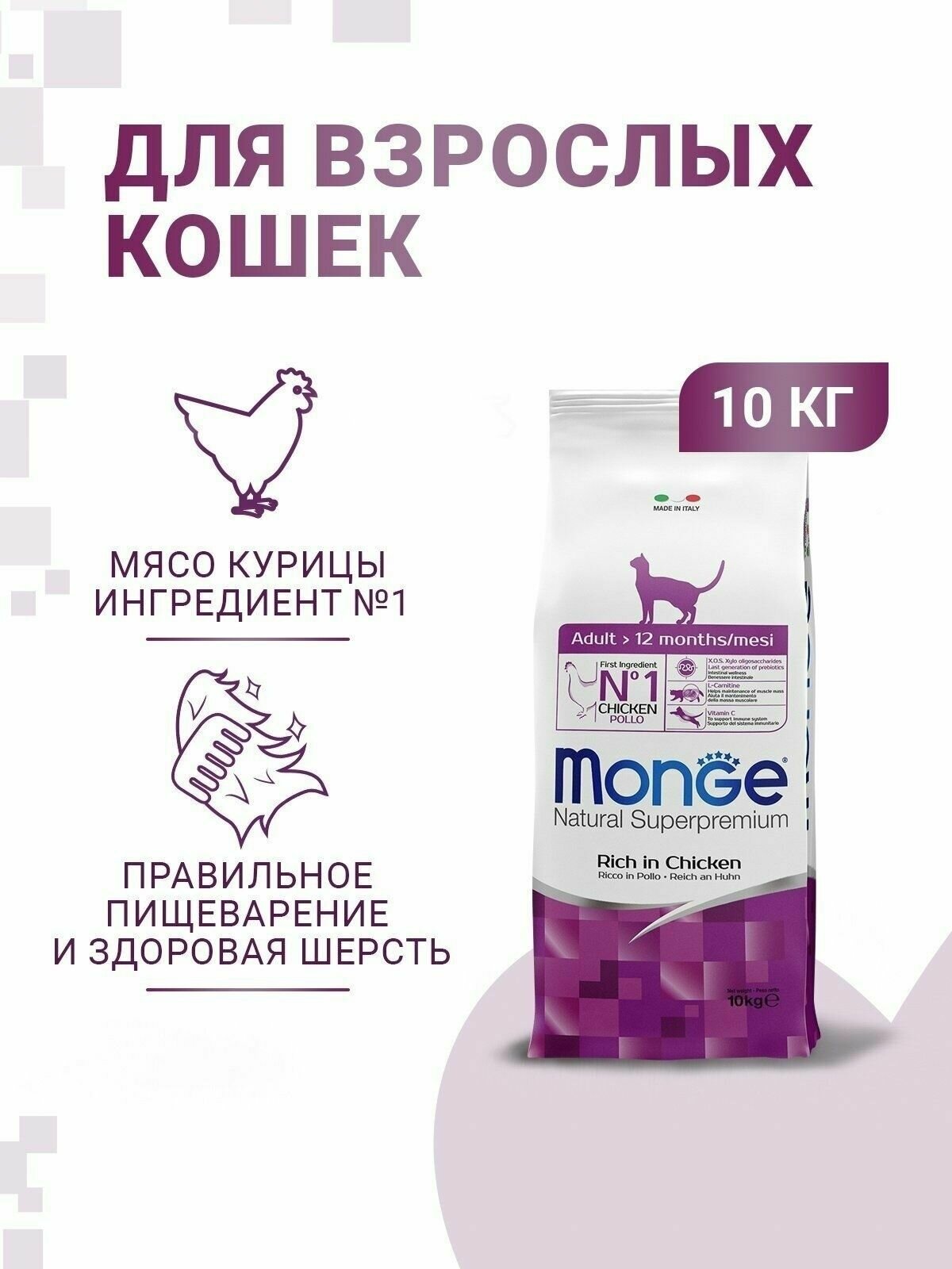 Корм сухой Monge для взрослых кошек Natural Superpremium с курицей 10 кг