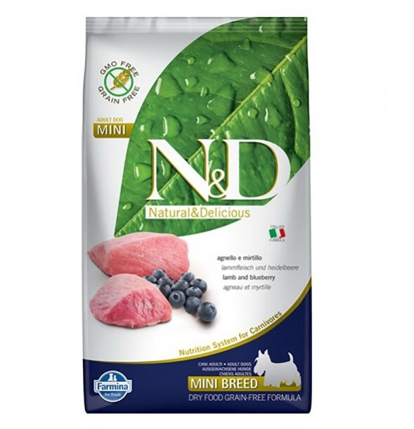 Farmina N&D Adult Grain Free Mini беззерновой для собак мелких пород ягненок и черника 800гр