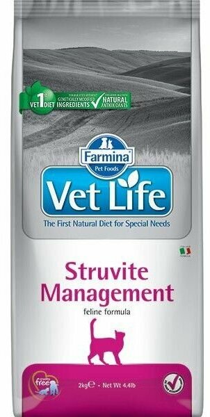 Сухой корм FARMINA 2кг для кошек VET LIFE CAT STRUVIT MANAGEMENT профилактика рецидивов МКБ