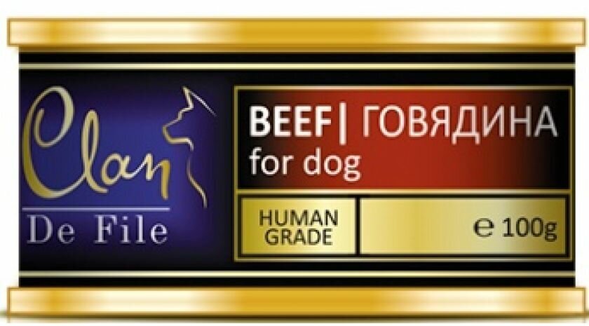 Влажный корм для собак CLAN De File, беззерновой, говядина 12 шт. х 100 г