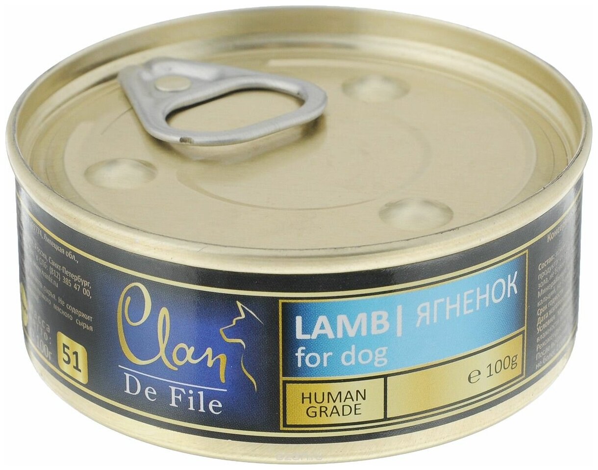 Влажный корм для собак CLAN De File, беззерновой, ягненок 1 уп. х 1 шт. х 100 г (для мелких пород)