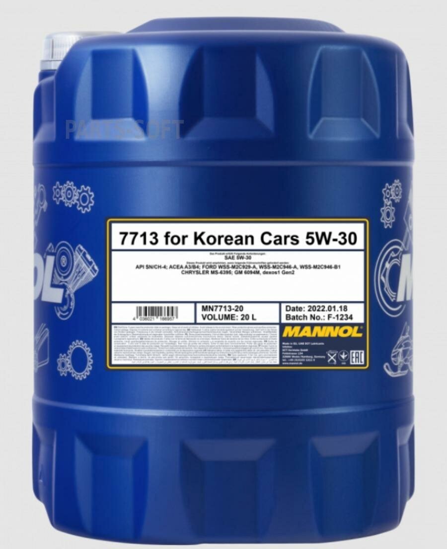 MANNOL 7713-20 Mannol For Korean Cars 5W-30 20 Л. Синтетическое Моторное Масло 5W30