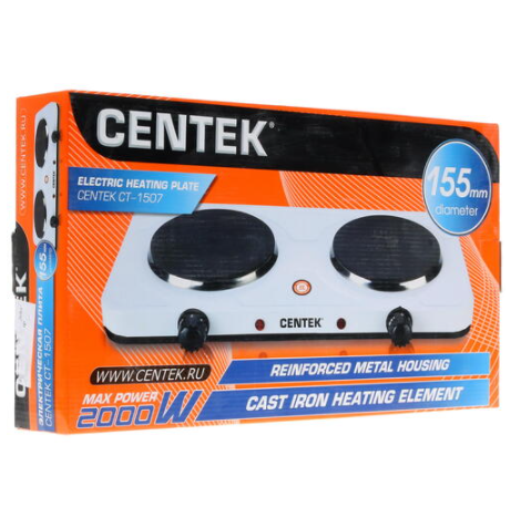 Плитка Электр. Centek Ct-1507, 2000Вт, 2 Комф., Чугун, Чёрная CENTEK арт. CT1507