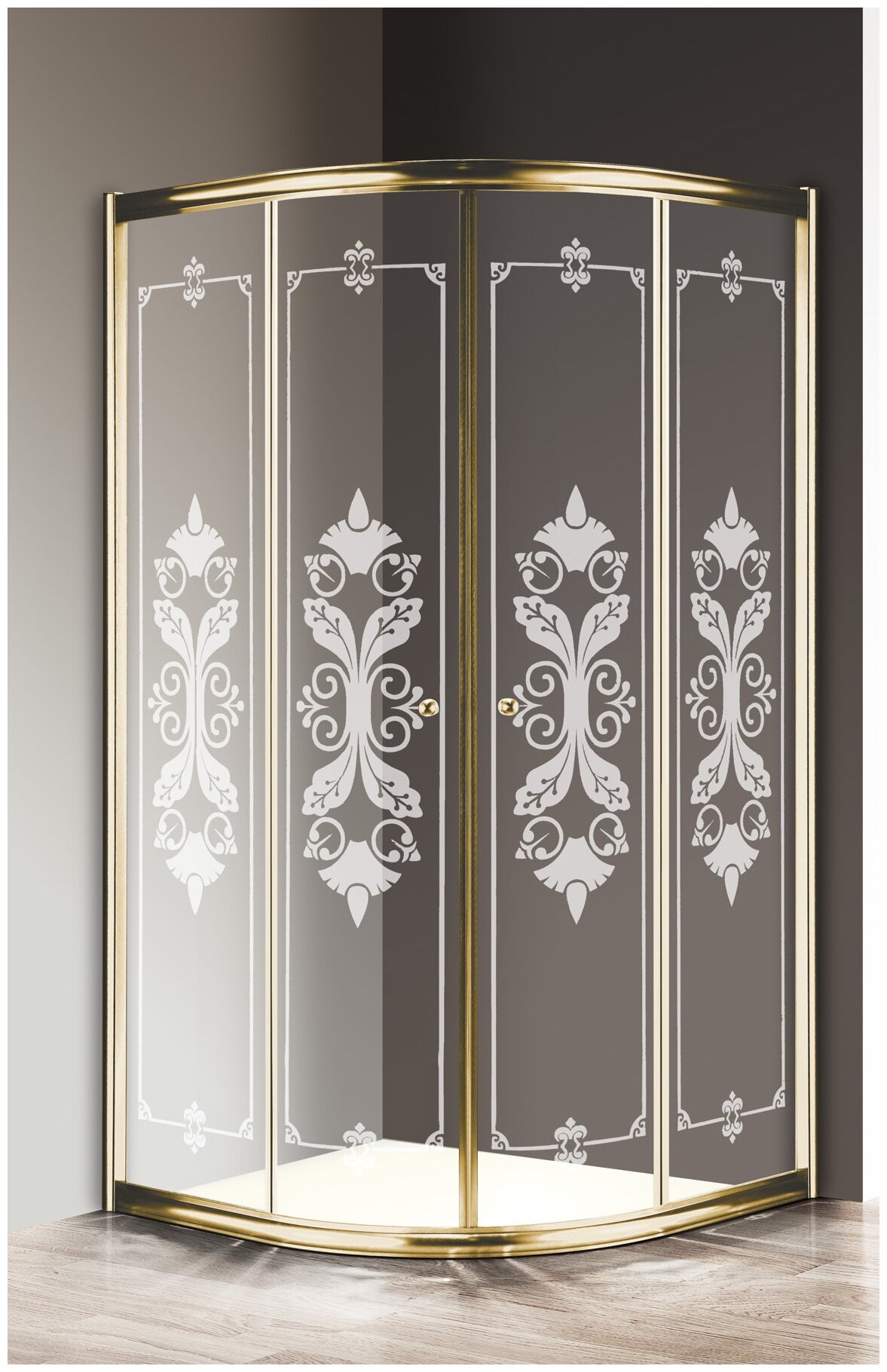 Душевой уголок Cezares Giubileo R-2 100x100 прозрачный с рисунком, золото (GIUBILEO-R-2-100-SCORREVOLE-CP-G)