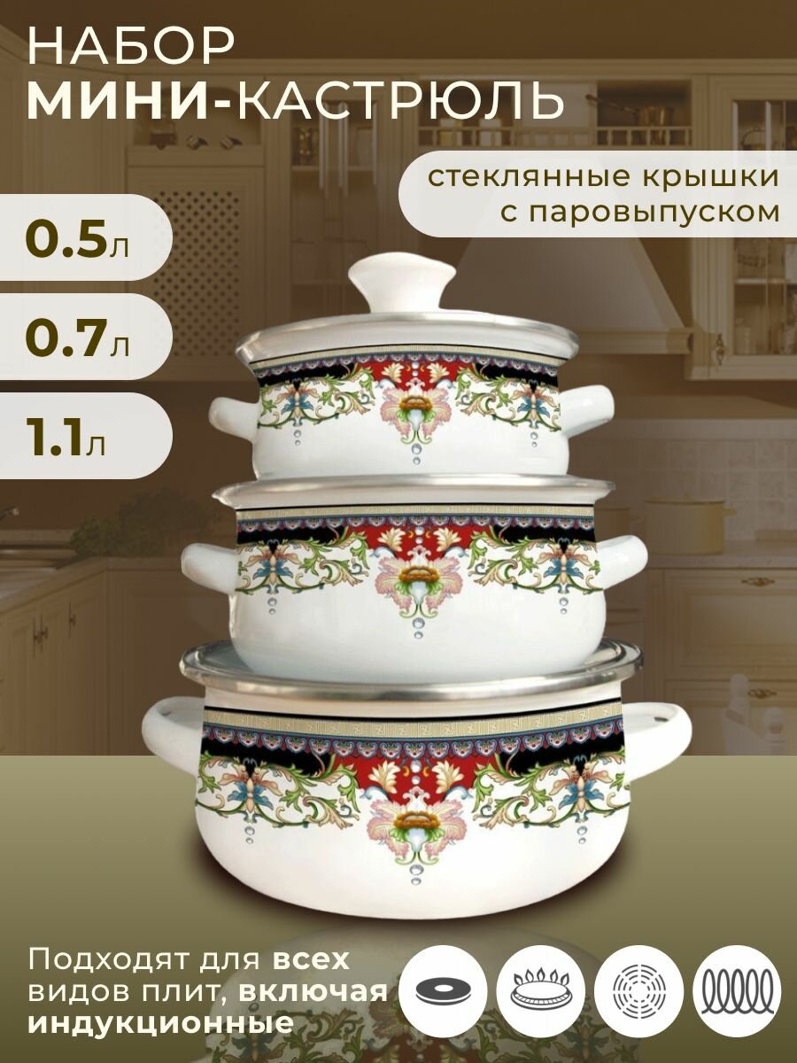 Набор мини кастрюль Kelli, эмалированные, 6 предметов