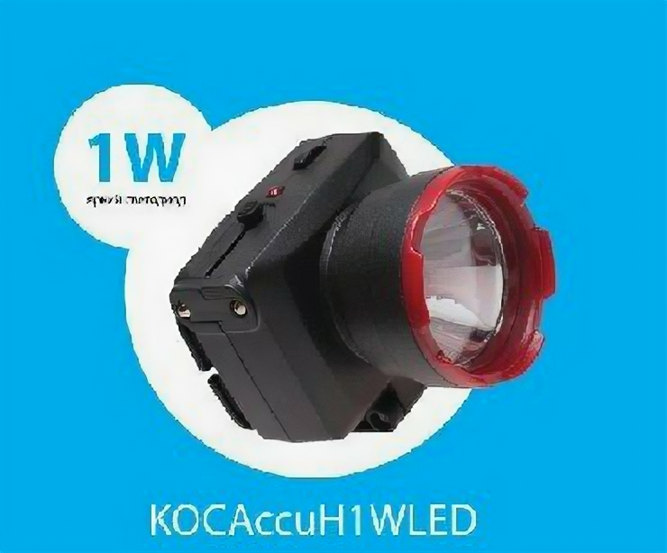 Фонарь аккумуляторный налобный H1W LED 1Вт 2 режима аккум. 0.5А.ч ЗУ 220В космос KOCAccuH1WLED
