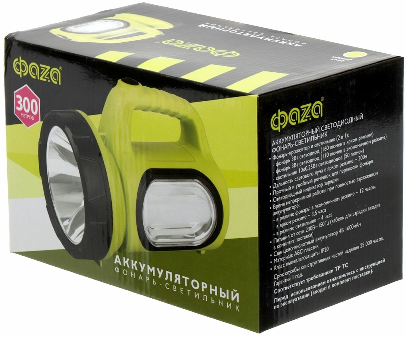 Аккумуляторный фонарь LED Фаzа, 2в1 AccuF7-L3W/L10gn, желтый 192х132х108 мм
