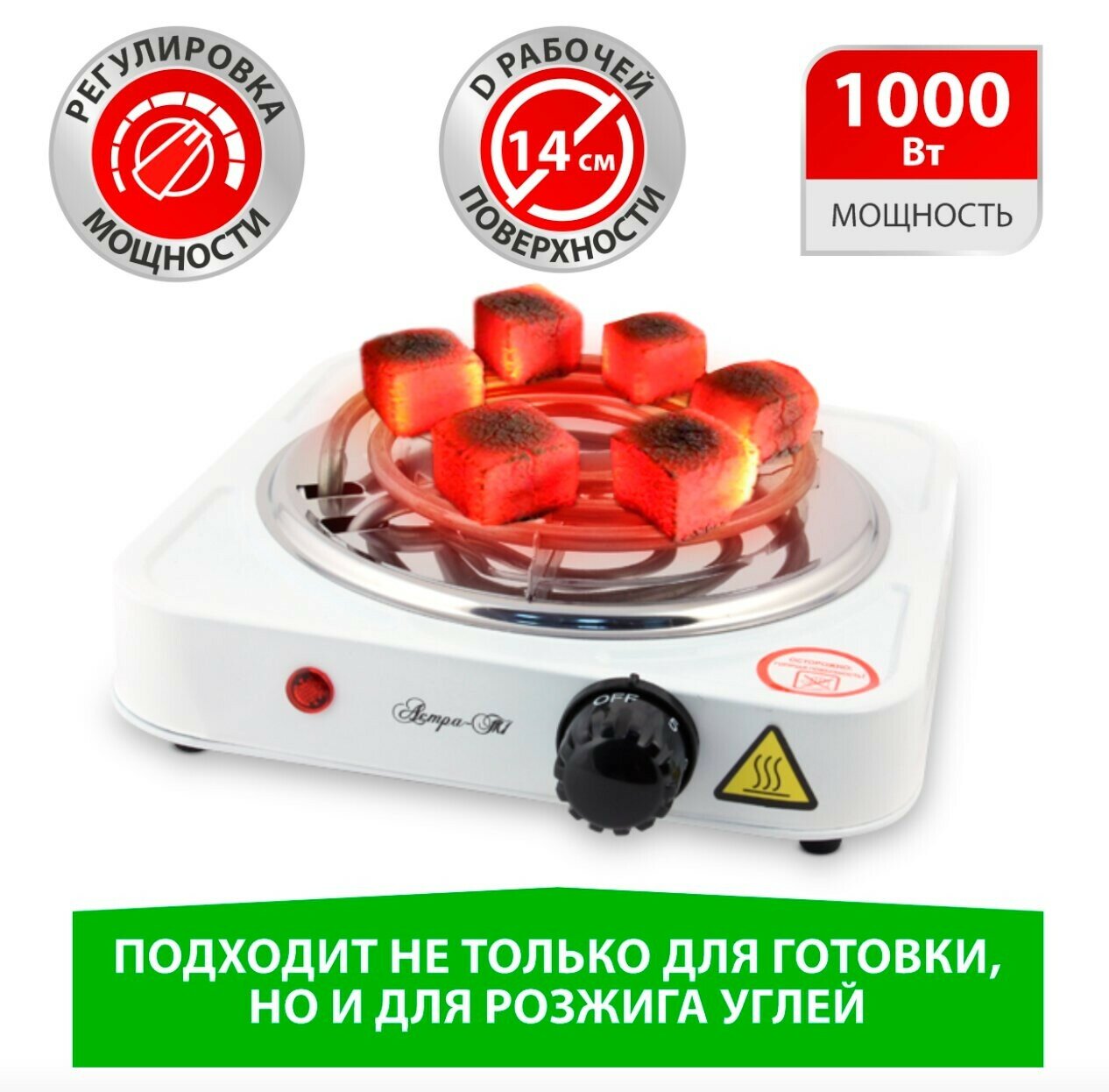 Плитка электрическая Великие Реки Астра-Т1, 1 конф. белая, ТЭН спираль 1000 Вт