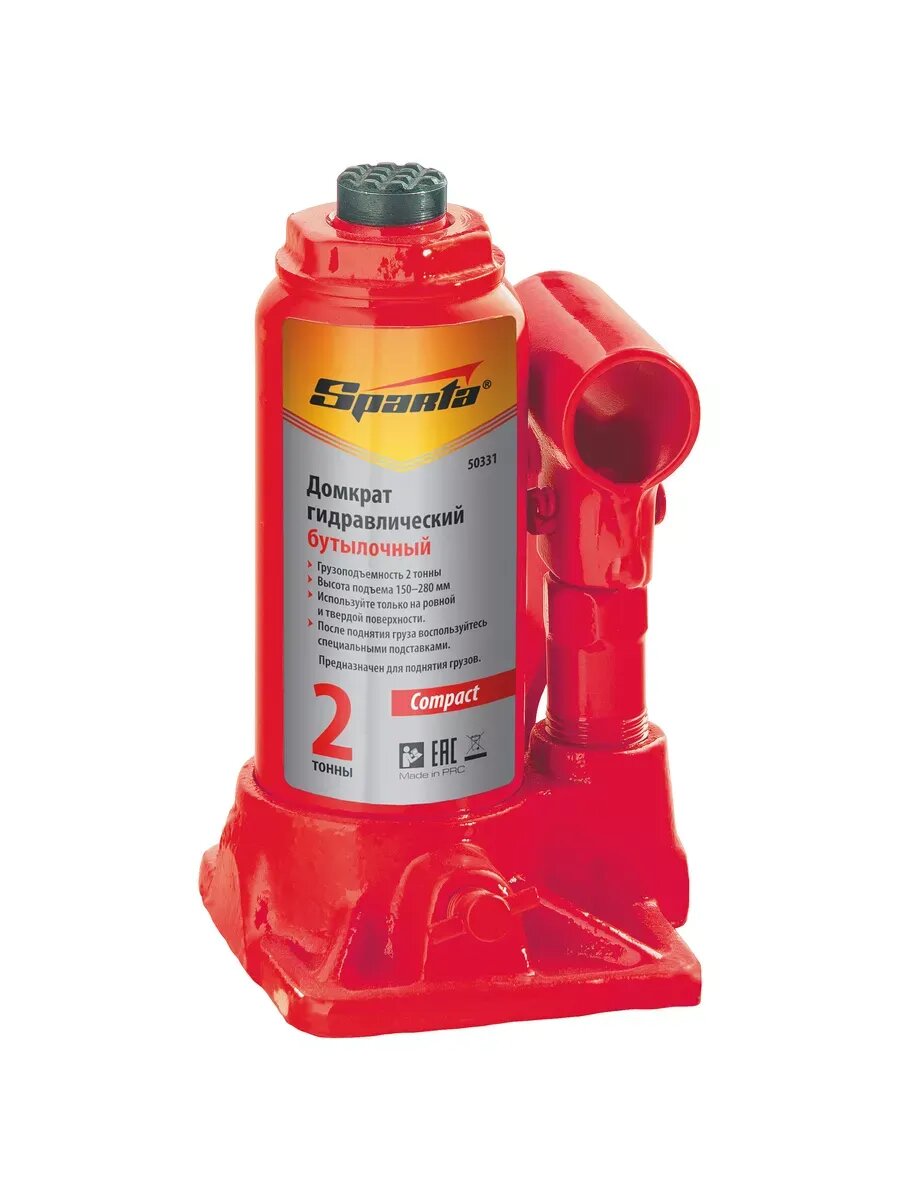 Купить Домкрат гидравлический бутылочный 2 т, h подъема 150-280 мм Sparta Compact