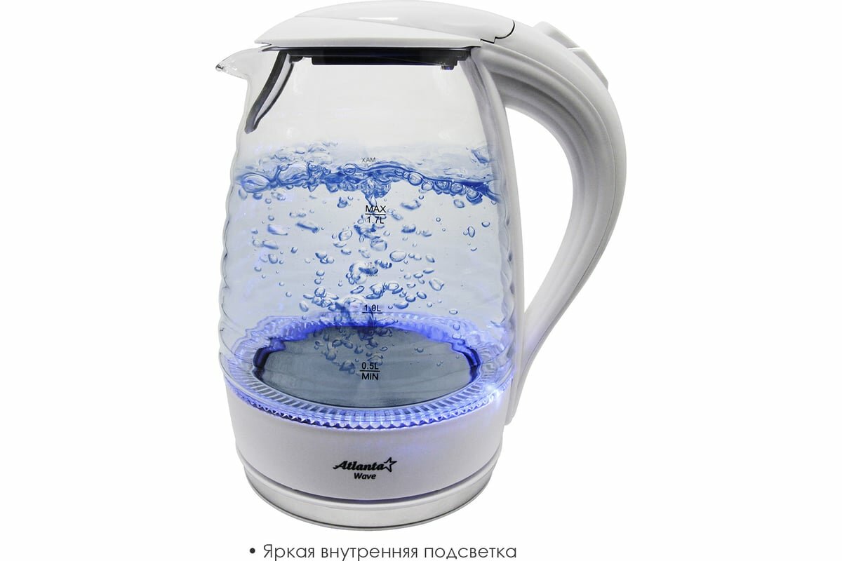 Atlanta Чайник стеклянный электрический ATH-2467 white