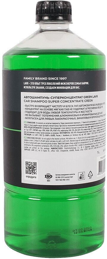 Автошампунь-суперконцентрат LAVR Green, 1 л, бутылка Ln2265