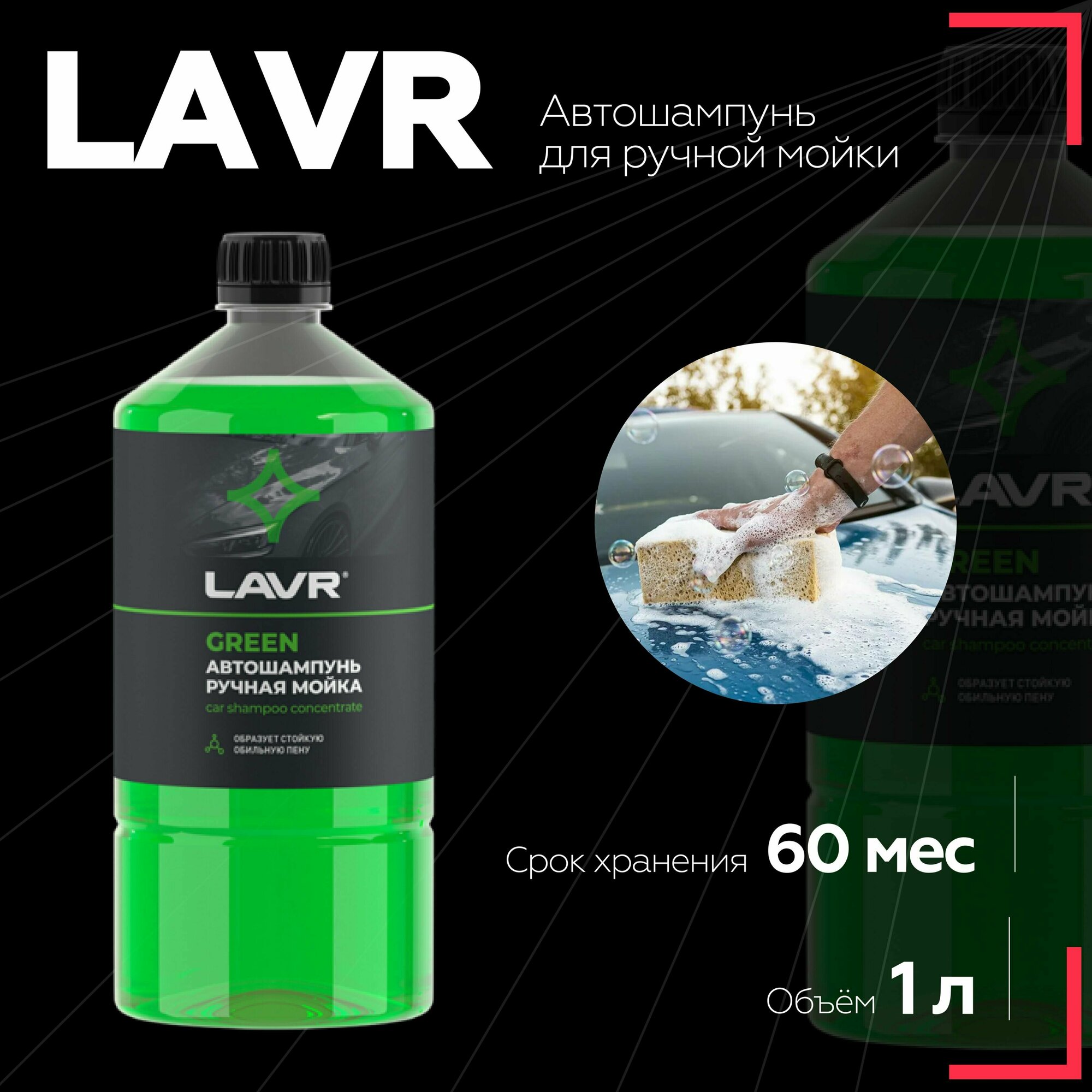 Автошампунь-суперконцентрат ручной LAVR Green 1:120 - 1:320, 1л