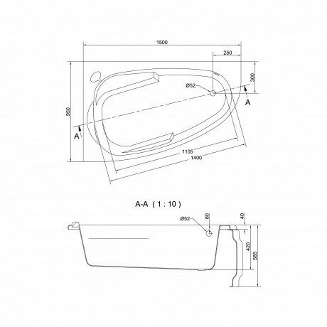 Ванна асимметричная JOANNA 160x95 левая
